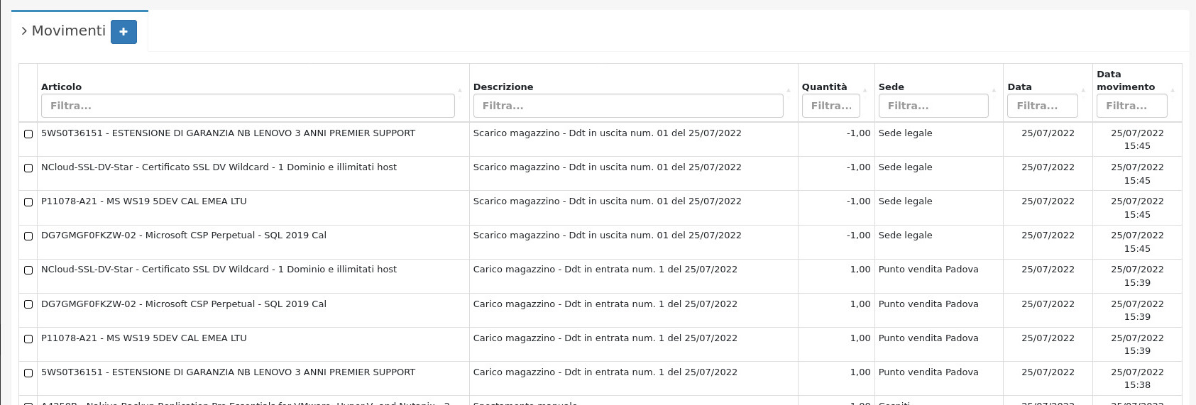 Andando ad analizzare i movimenti sarà ora possibile vedere lo spostamento dei prodotti dalla sede legale al punto vendita selezionato.