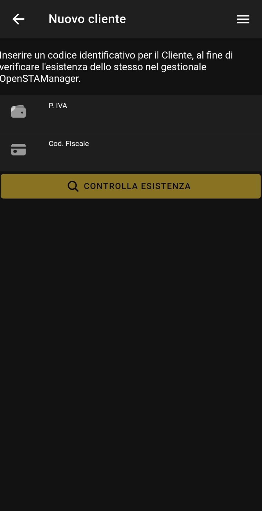 Cliccando sul tasto + è possibile inserire un nuovo cliente, verificando se la partita IVA o il codice fiscale che si stanno andando a registrare siano già presenti in anagrafica.