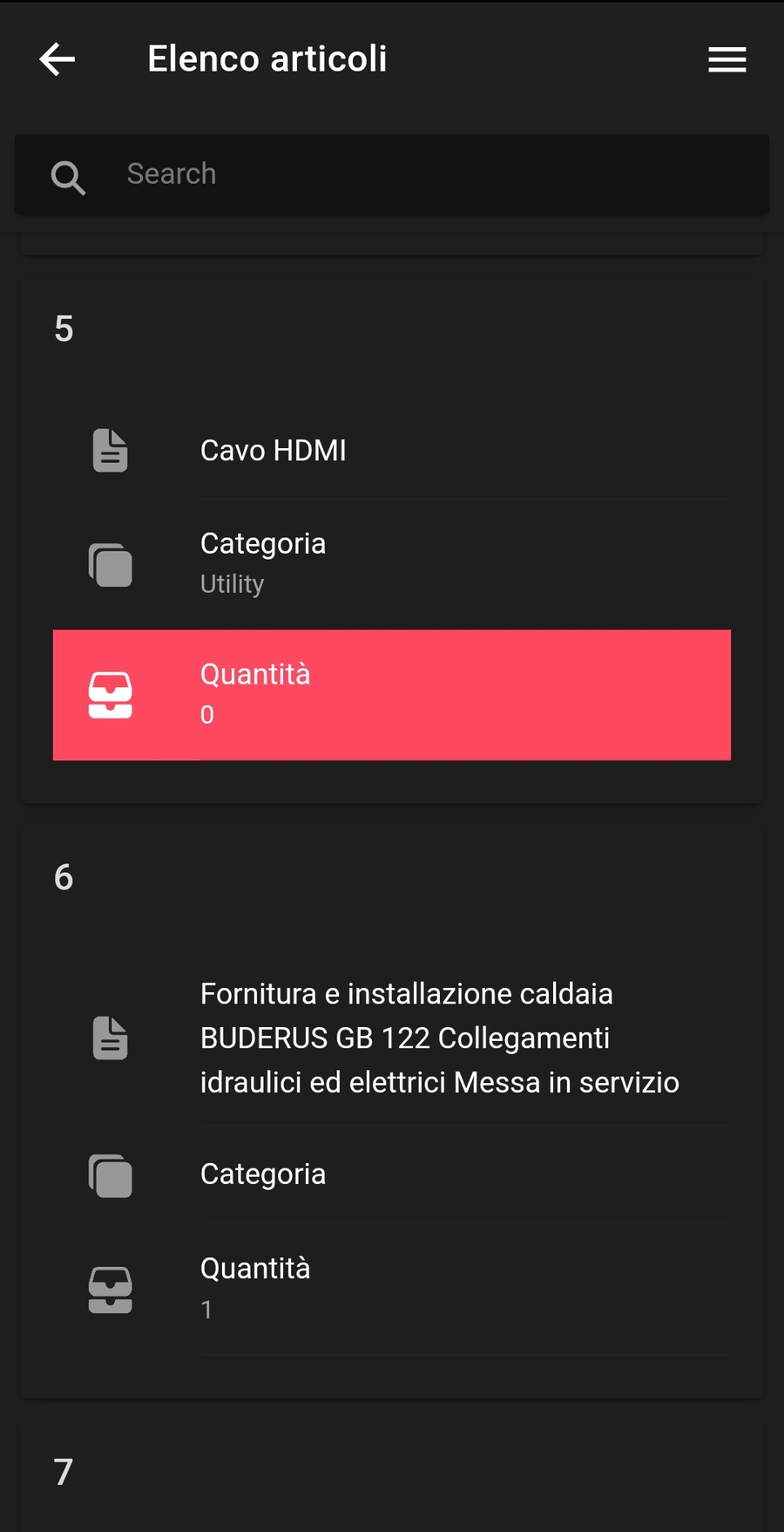 Da questo modulo è possibile visualizzare gli articoli presenti a magazzino, con evidenziati in rosso gli articoli con quantità pari a zero.