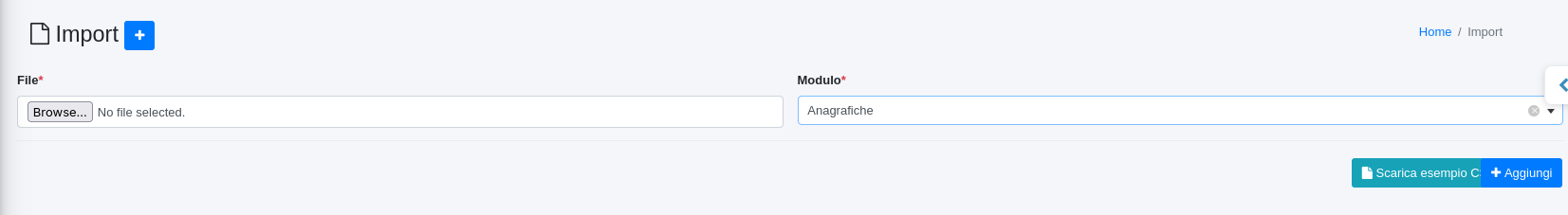 È possibile importare le anagrafiche in maniera massiva tramite il caricamento di un file CSV.