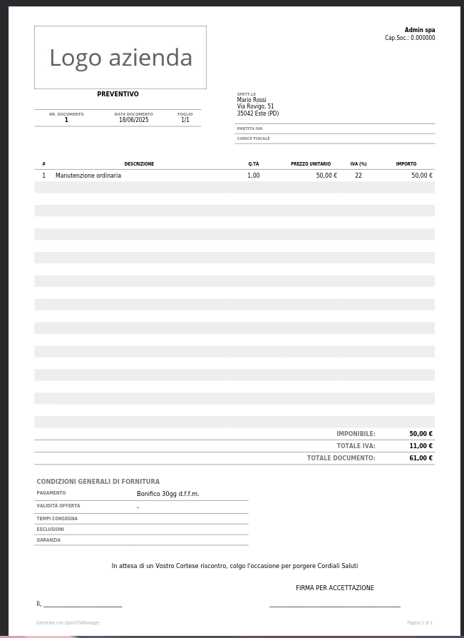 Stampa preventivo (senza prezzi)