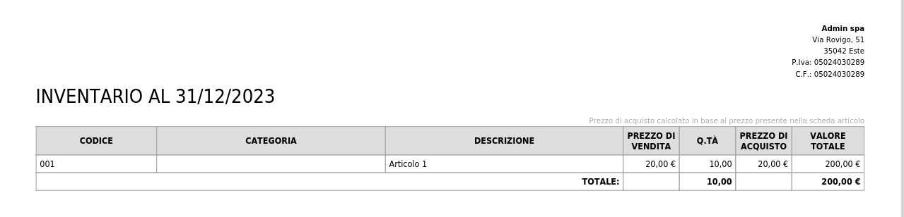 # Stampa inventario