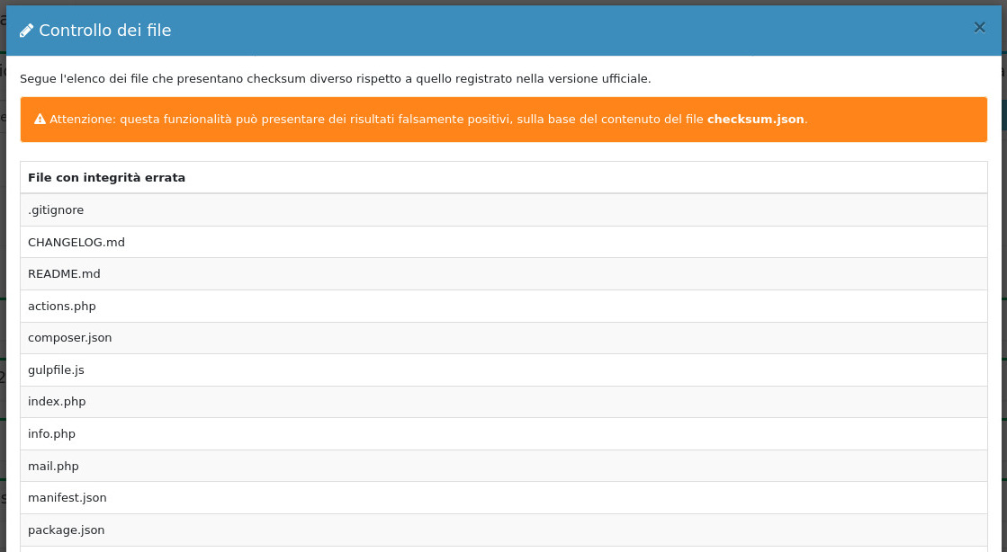Questa funzionalità potrebbe presentare dei risultati falsamente positivi, sulla base del contenuto del file checksum.json