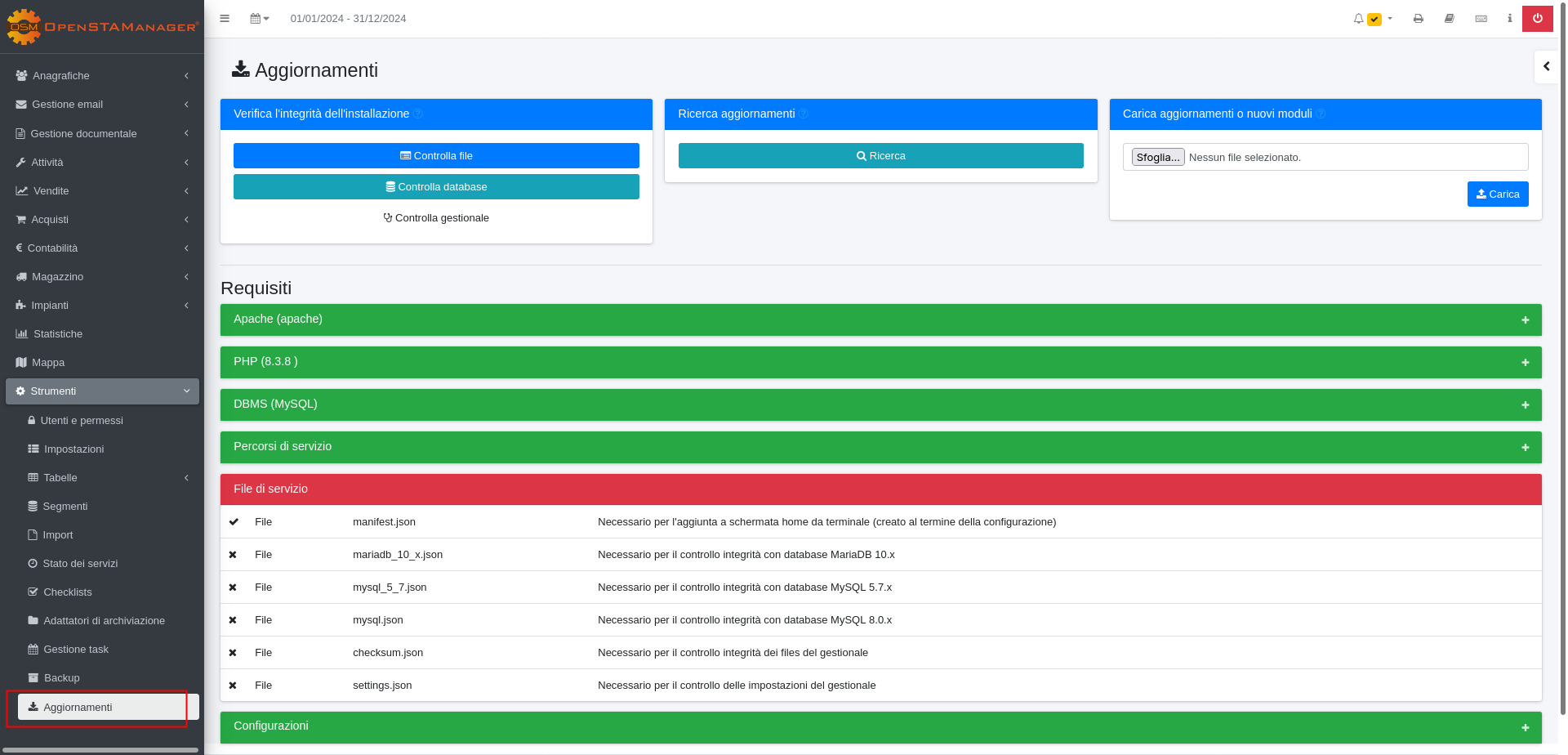 L'installazione del gestionale richiede la presenza di un web server Apache con abilitato il [DBMS MySQL](https://www.mysql.com) e il linguaggio di programmazione [PHP](https://php.net).