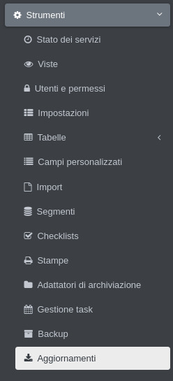 * Cliccare sul modulo **Strumenti** e aprire **Aggiornamenti**