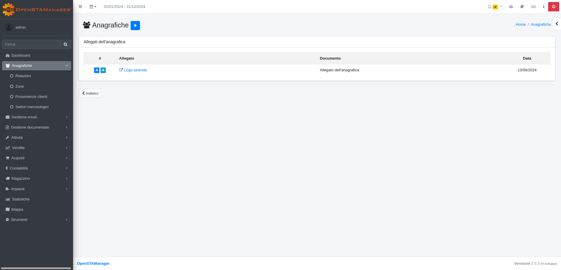 Il plugin **Allegati** è una componente del modulo **Anagrafiche** dedicata al riepilogo degli allegati. Da qui si possono vedere tutte le fatture in formato XML relative all'anagrafica.