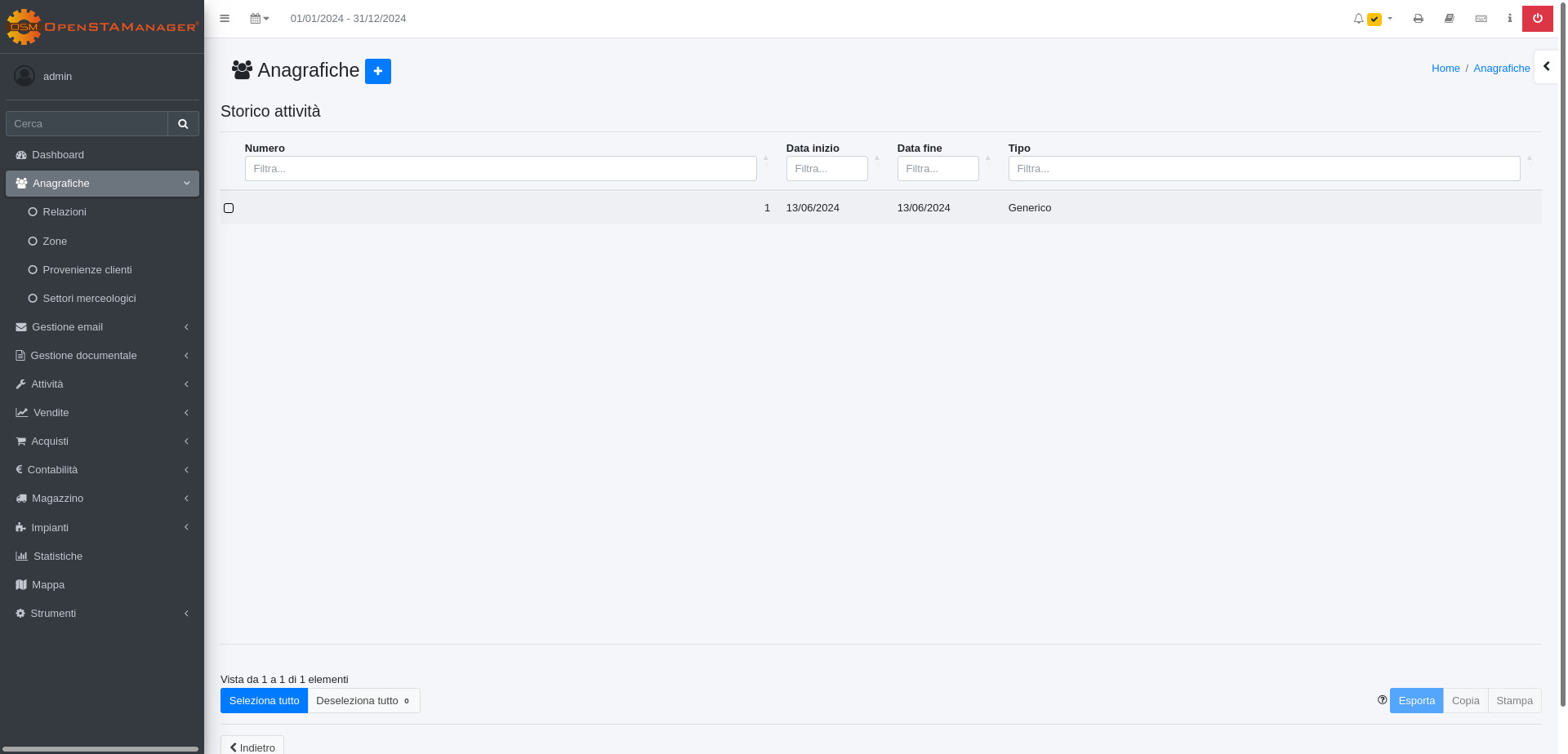 Il plugin **Storico attività** è una componente del modulo **Anagrafiche** dedicata al riepilogo delle attività.