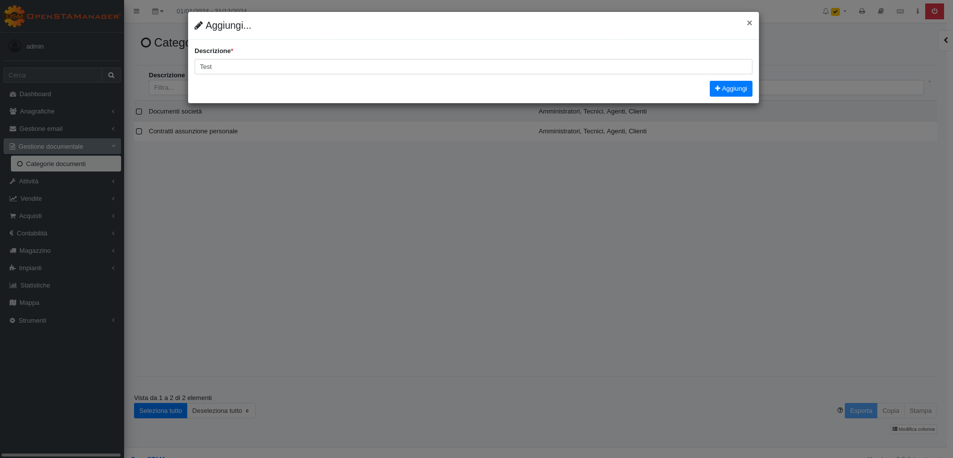 Per creare una nuova categoria documenti si deve cliccare sul tasto (+).