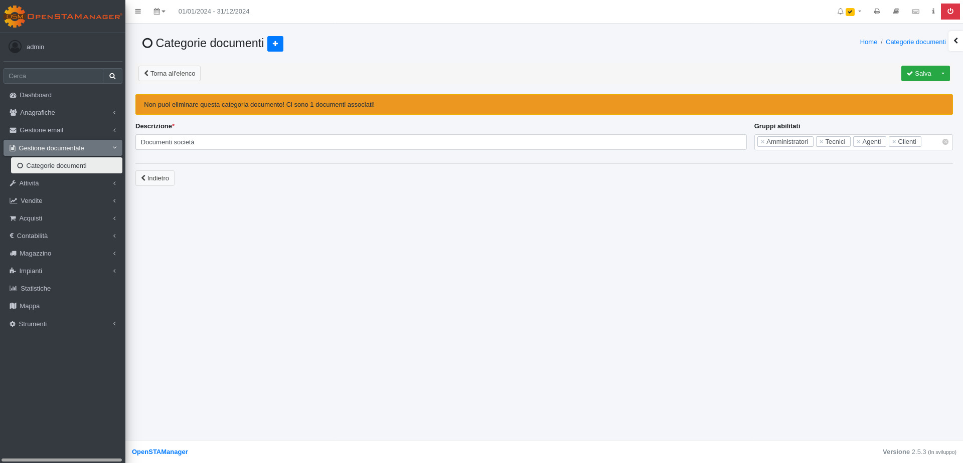 E' possibile modificare le categorie di documenti cliccando su un determinato record ed entrando nella schermata di dettaglio.