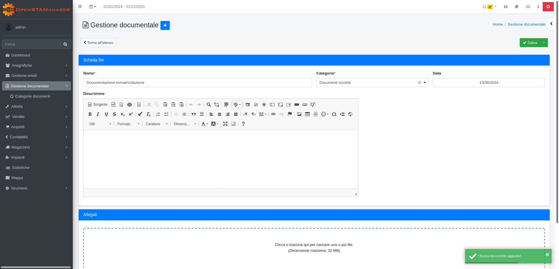Quando si carica un allegato in qualsiasi schermata, viene creata una **categoria** in base a quella indicata. In questo modo quando si va a caricare un nuovo allegato, appariranno tra i consigliati le diverse categorie precedentemente create permettendo così di creare delle sezioni. E' comunque possibile creare una nuova categoria.