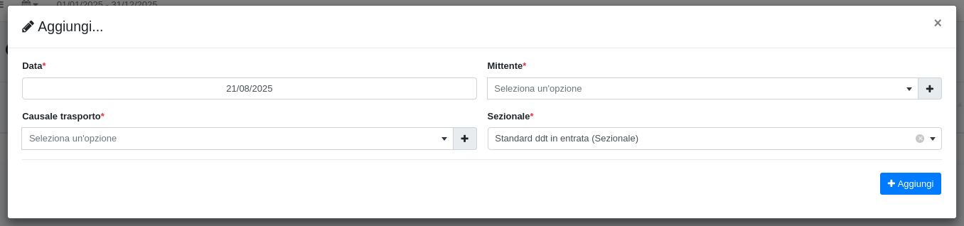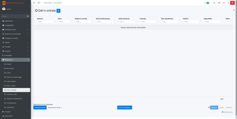 Per creare un nuovo DDT in entrata si dovrà cliccare sul tasto (+).