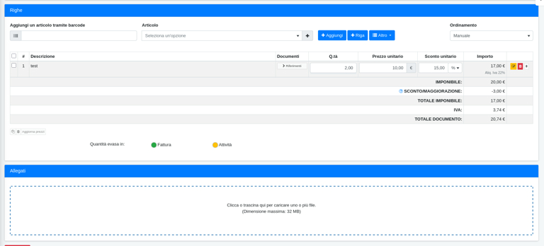 Cliccando sul record da modificare si aprirà la schermata di dettaglio, dove sarà possibile trovare diverse sezioni: