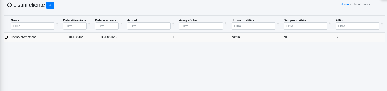 # Listini cliente