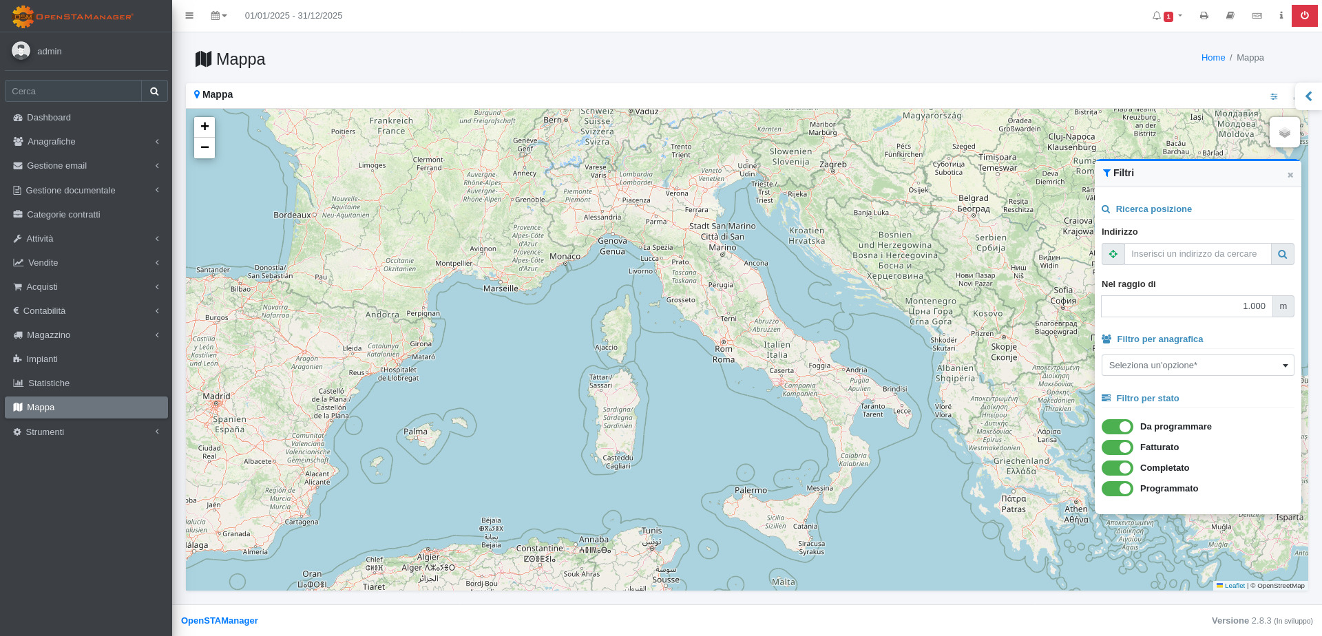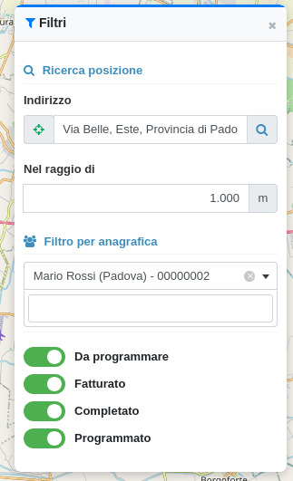 Il modulo è raggiungibile dal menu laterale del gestionale, sotto il link Mappa.