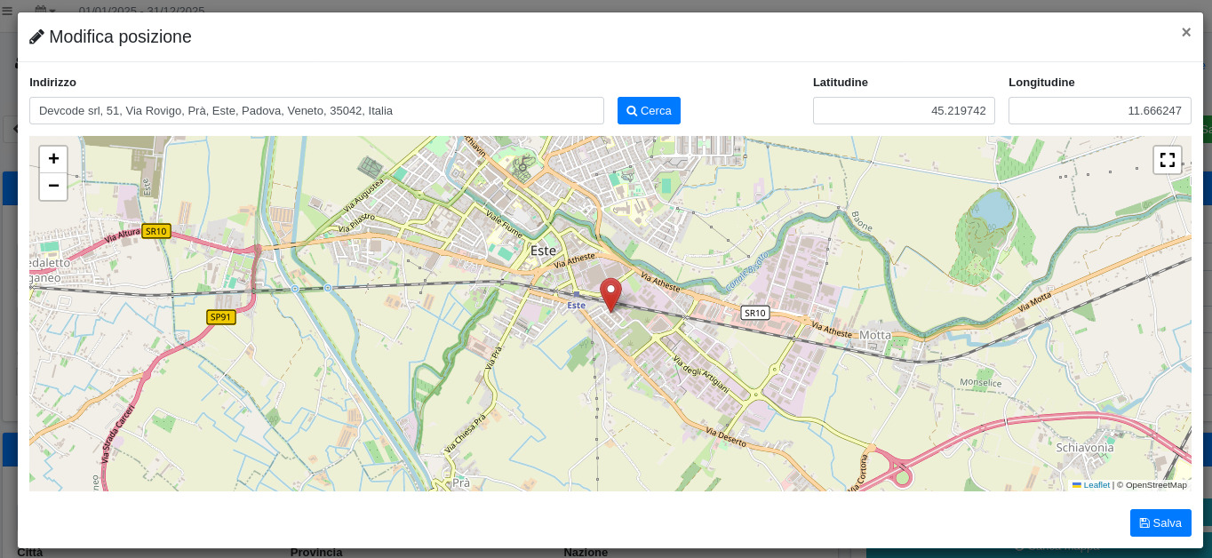 Da qui si dovrà inserire l'indirizzo, così le due coordinate potranno venir correttamente calcolate cliccando su Cerca. Una volta terminato si dovrà cliccare su Salva.