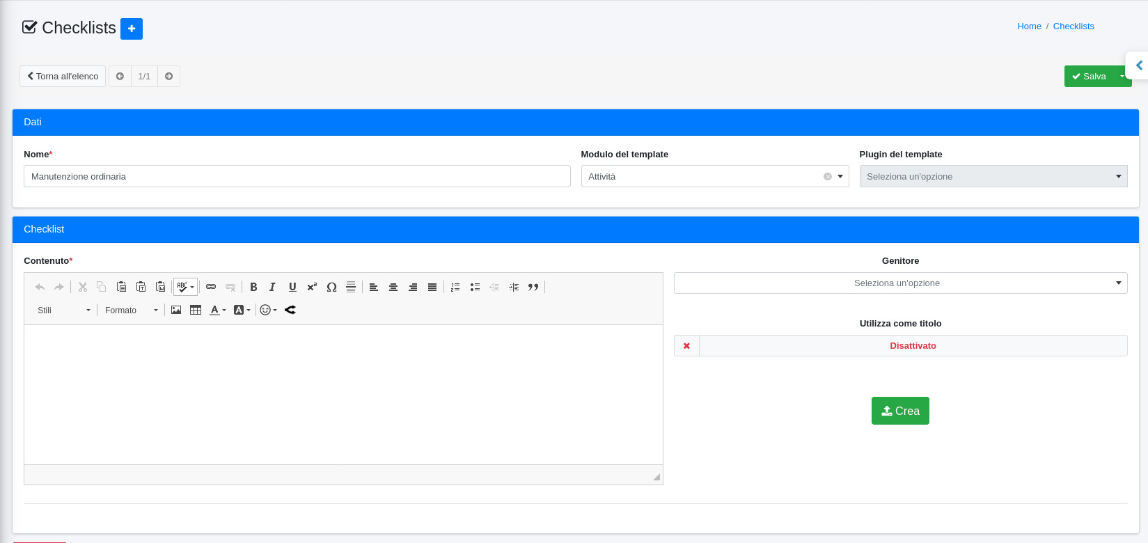 Per creare una nuova checklist si dovrà cliccare sul tasto (+).