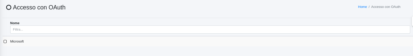 Da questo modulo è possibile abilitare l'accesso al gestionale tramite OAuth Microsoft