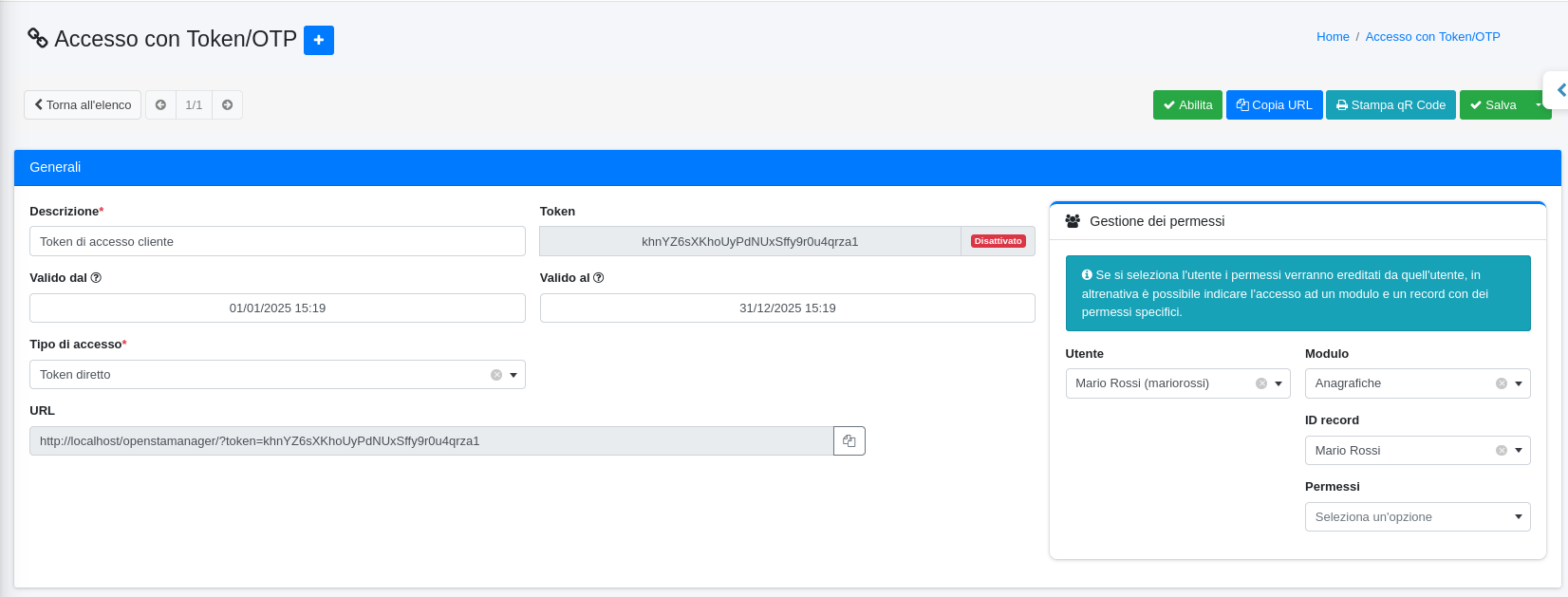 E' possibile gestire i token di accesso da Strumenti/Gestione accessi/Accesso con Token/OTP