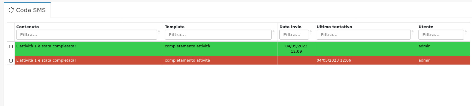 In questo modulo è possibile tenere traccia degli sms inviati, degli sms in uscita, e di quelli non inviati.