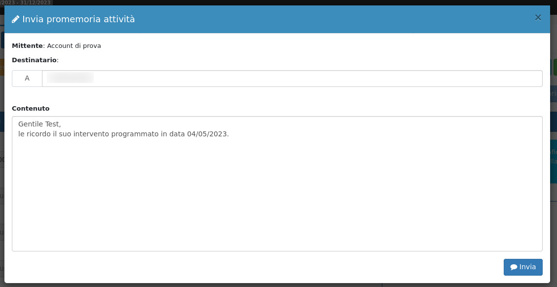Il numero di telefono a cui inviare l'SMS verrà autocompilato con il numero presente nell'anagrafica cliente selezionata.