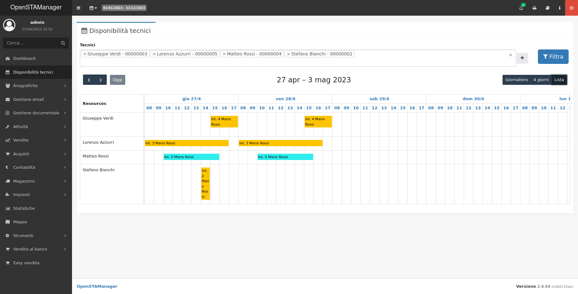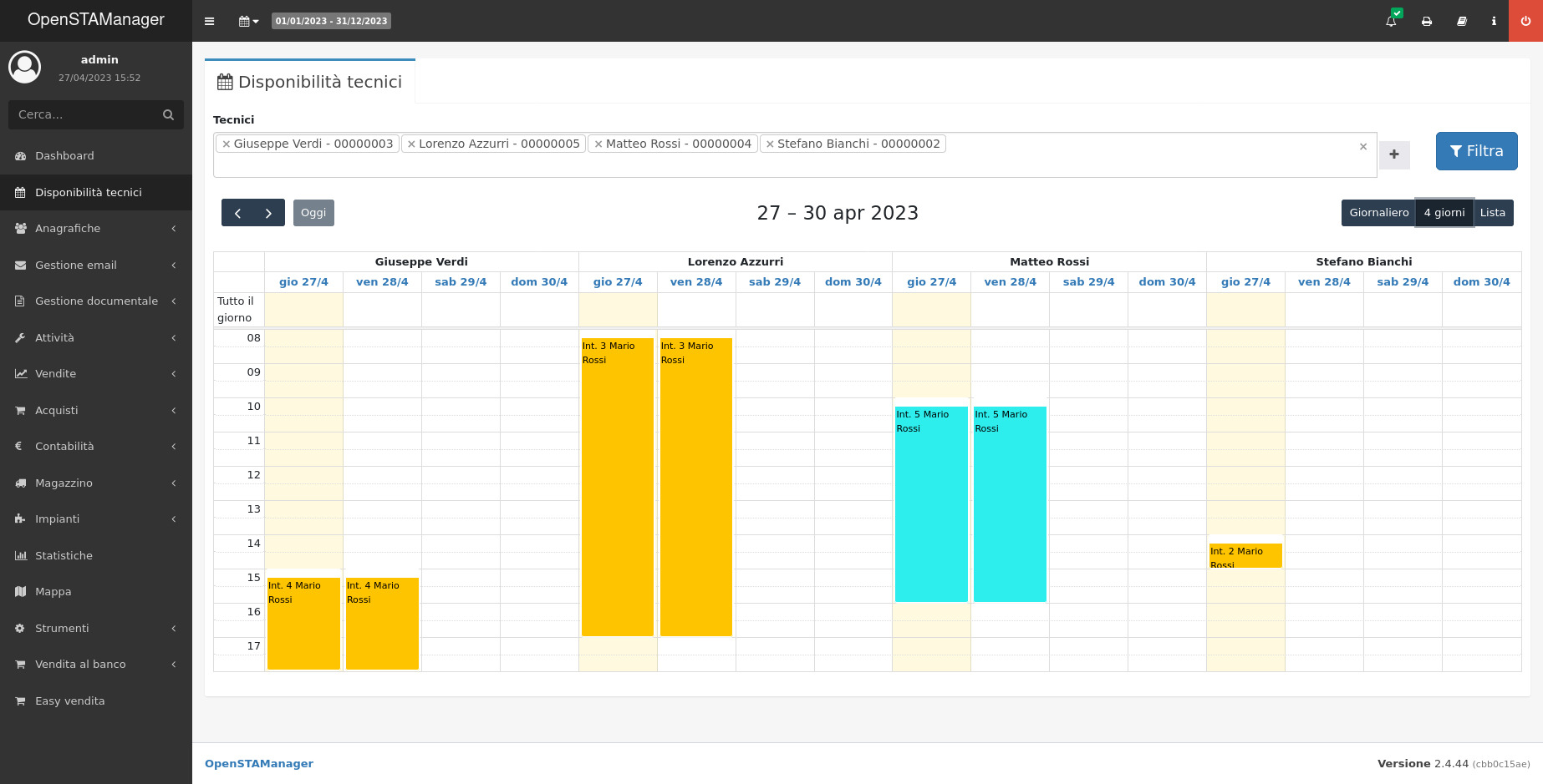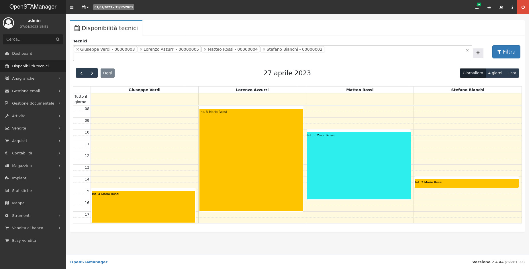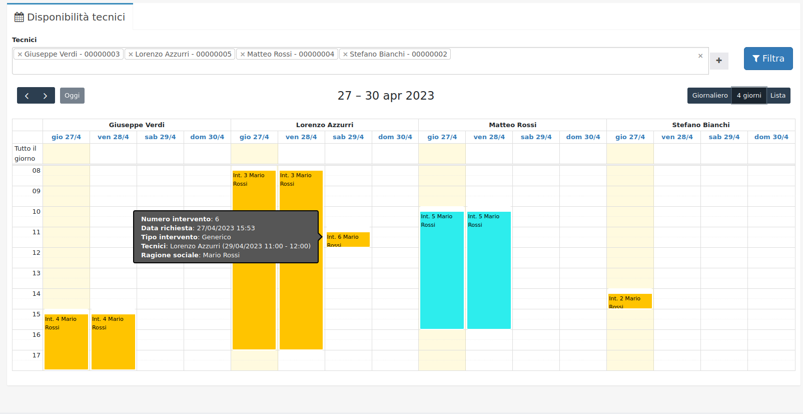 A seguito dell'installazione del modulo, cliccando su Disponibilità tecnici apparirà la seguente schermata: