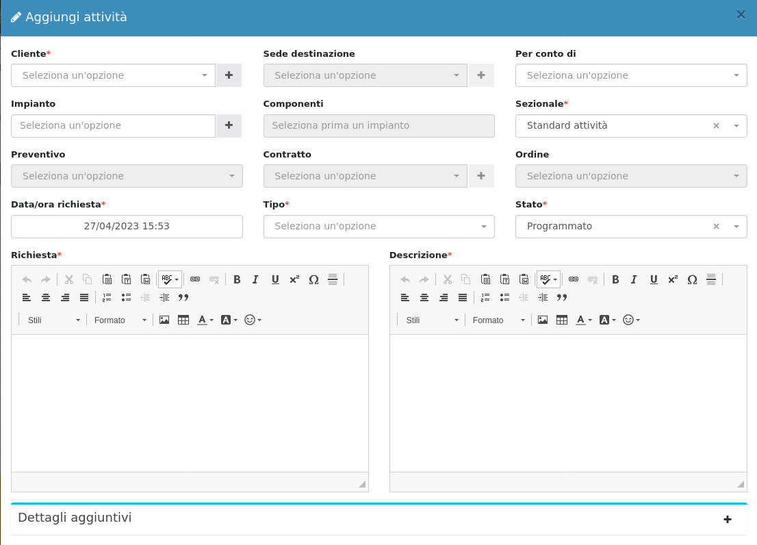 Da qui, cliccando direttamente sul calendario, è possibile andare a programmare una nuova attività.
