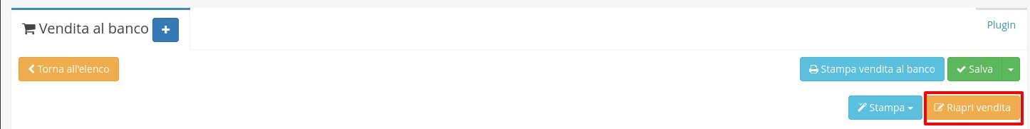 Per poter modificare una vendita al banco chiusa, sarà necessario entrare nella vendita interessata e cliccare su Riapri vendita. Da qui sarà possibile apportare le modifiche necessarie.