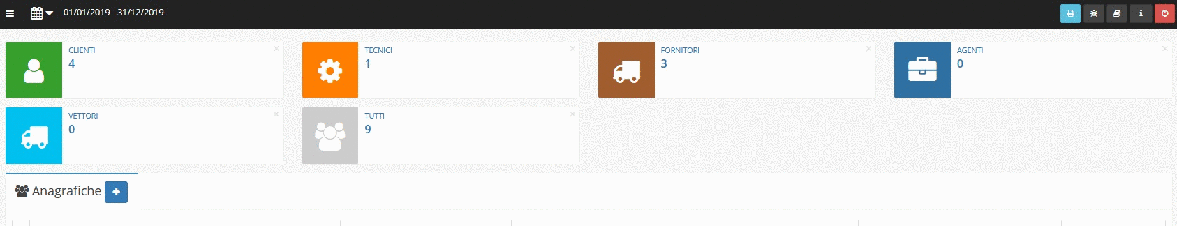 Ogni modulo del gestionale è raggiungibile attraverso il menu laterale, ma può presentare una grafica personalizzata sulla base della funzione a cui è dedicato. Esistono però alcune caratteristiche comuni che si possono individuare quasi sempre, descritte in questa pagina.