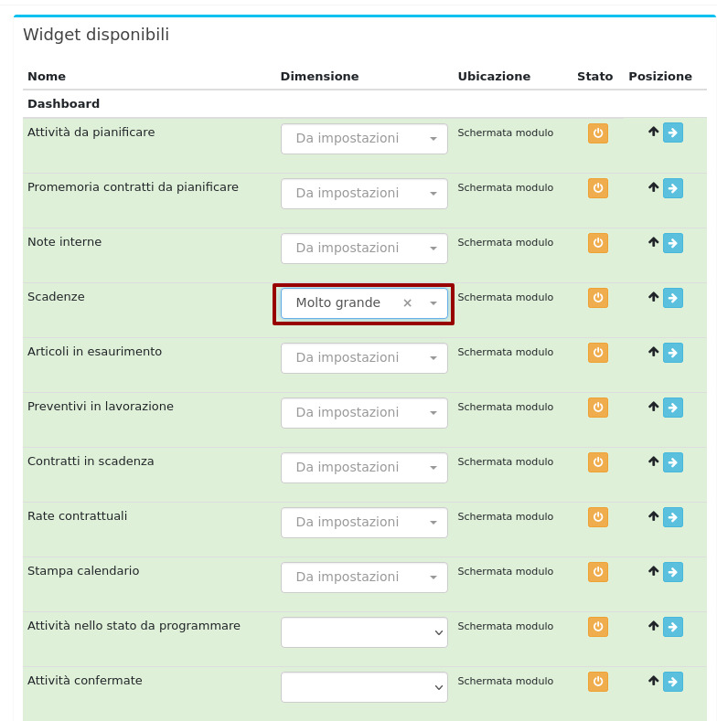 Guida ai widget di OpenSTAManager