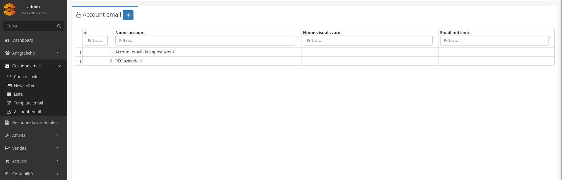 Il modulo Account email permette all’azienda di gestire tutte le informazioni riguardanti gli account email utilizzati da OpenSTAManager per l'eventuale invio di email con contenuti specifici dei diversi moduli.