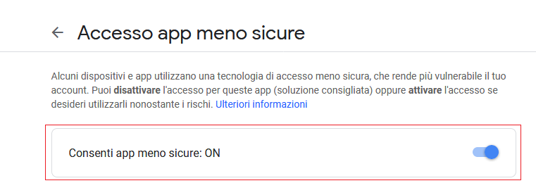 DEPRECATA dal 30/05/22: https://support.google.com/accounts/answer/6010255?hl=it