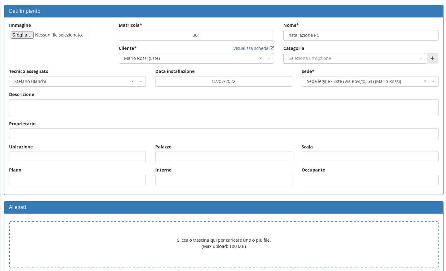 Come modificare un impianto in OpenSTAManager