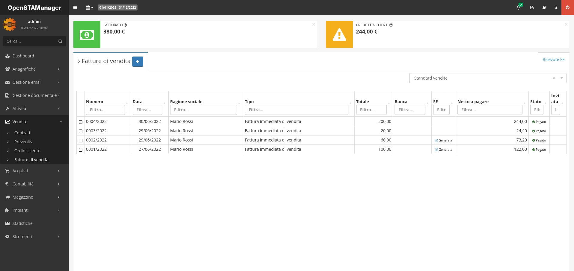 Nel caso siano presenti delle fatture di vendita generate ma non ancora inviate (entro i 12 giorni dalla scadenza per inviare le fatture allo SDI), verranno segnalate dal gestionale con un avviso nella sezione fatture di vendita.