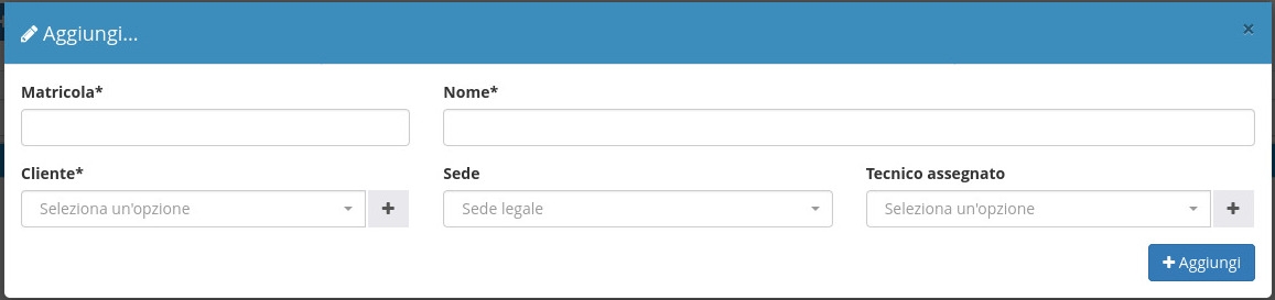Per creare un impianto in OpenSTAManager si dovrà cliccare sul tasto (+).
