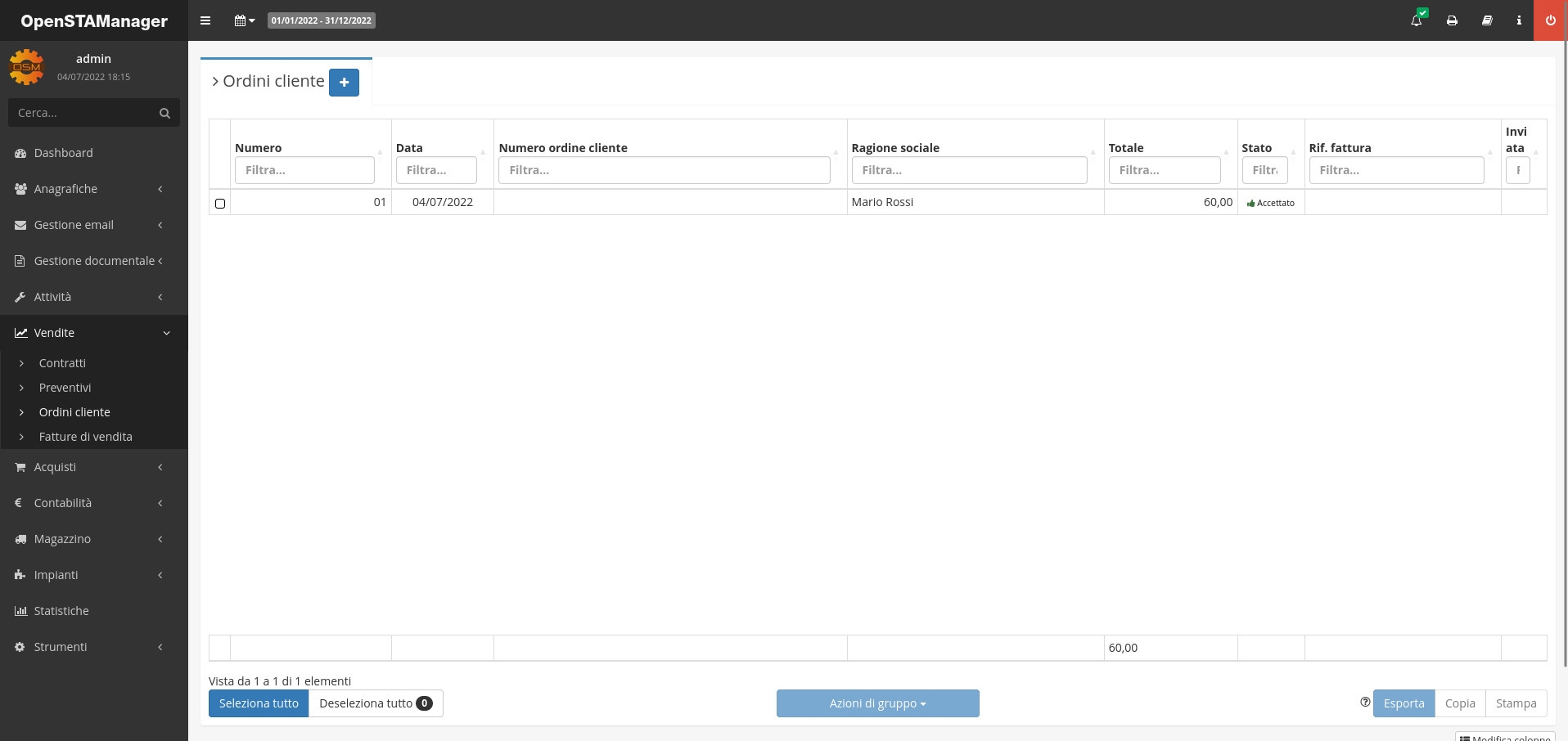 Cliccando su Aggiungi si procede alla creazione di un ordine cliente.