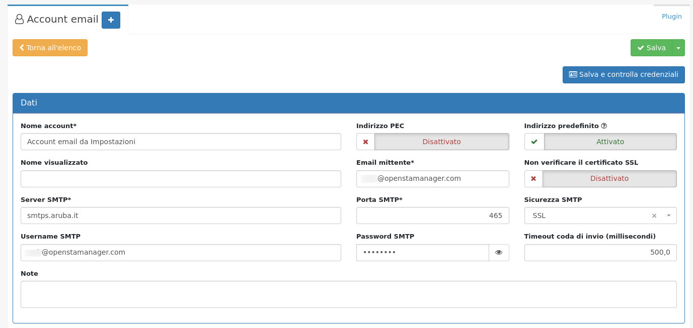 In particolare, vengono resi disponibili i seguenti campi relativi alla gestione di account SMTP: