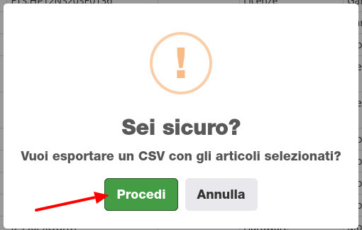 Il gestionale chiederà quindi conferma di procedere all'esportazione in formato CSV delle fatture di vendita selezionate.