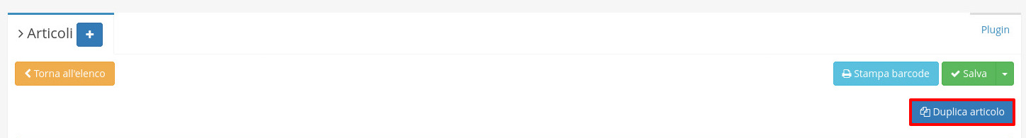 Dalla schermata di dettaglio di un articolo è possibile procedere alla sua duplicazione cliccando su duplica articolo.