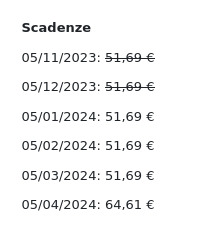 Queste scadenze avranno la stessa data di emissione, riferimento fattura e importo, ma con data di scadenza diversa in base alla rata.