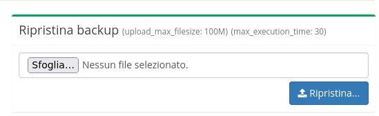 Esiste una procedura semplificata di ripristino dei backup, che cerca di risolvere il problema tecnico per utenti con meno esperienza tecnica. Si dovrà cliccare Ripristina nel backup interessato, dalla sezione Backup compressi.