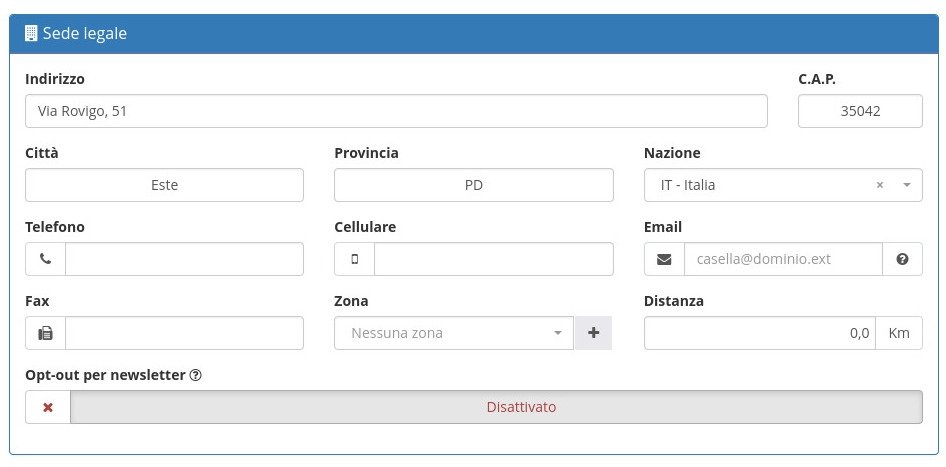 Opt-out per newsletter (attivando questa opzione l'anagrafica verrà esclusa dai destinatari di eventuali Newsletter)