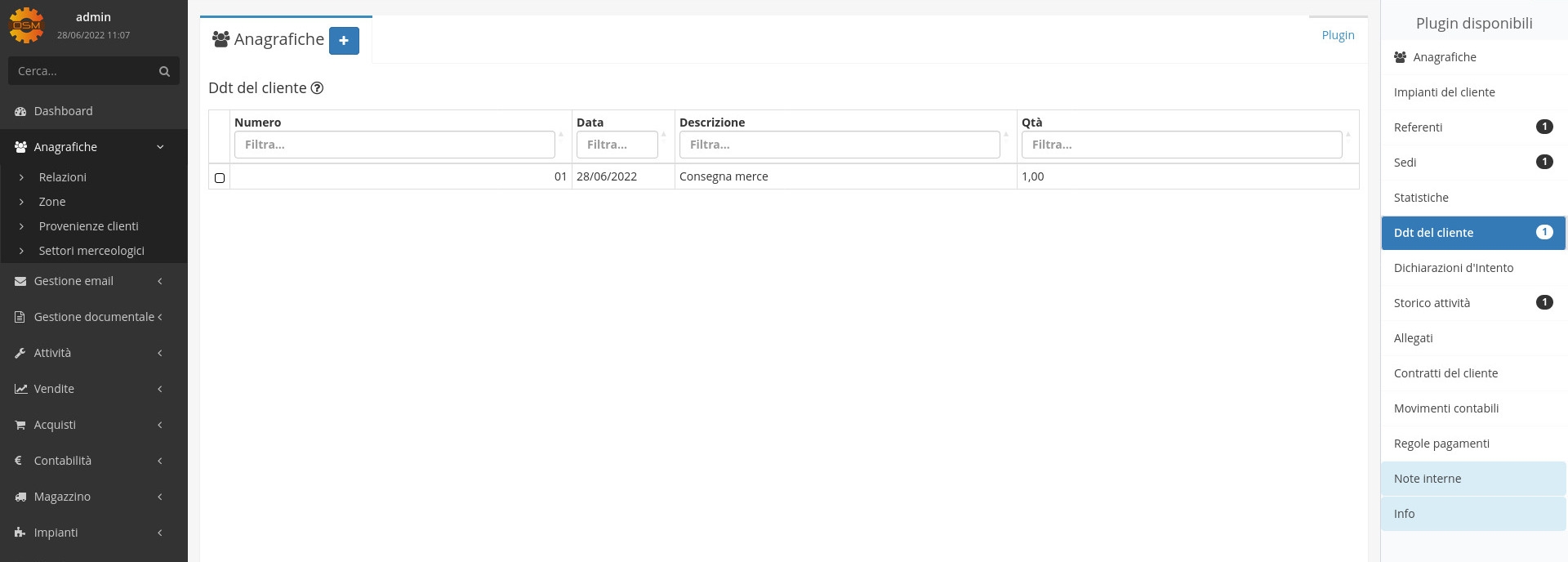 Il plugin Ddt del cliente è una componente del modulo Anagrafiche dedicata alla completa visualizzazione dei Ddt del cliente.