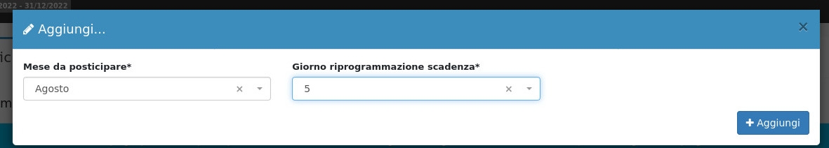 Andranno qui inseriti quindi il mese di chiusura dell'attività e il giorno del mese successivo in cui andare a riprogrammare le scadenze.