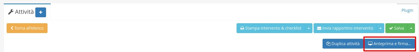 Dalla schermata di dettaglio di un'attività è possibile procedere alla visualizzazione della sua anteprima da far firmare al cliente per segnalare l'avvenuto completamente.