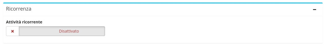 Nella sezione Ricorrenza è possibile dichiarare se l'attività è ricorrente o meno: