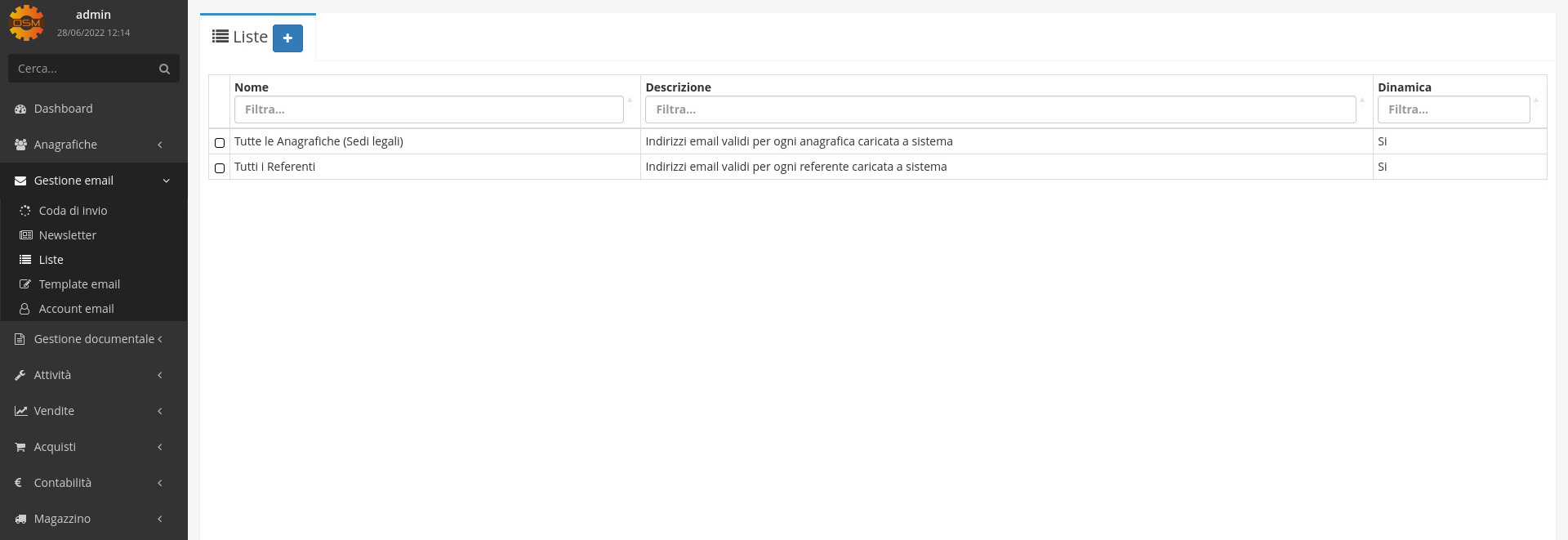 Il modulo Liste permette all’azienda di creare dei gruppi di destinatari da utilizzare nell' invio delle email.