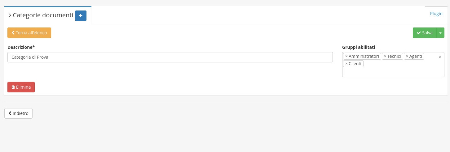 E' possibile modificare le categorie di documenti cliccando su un determinato record ed entrando nella schermata di dettaglio.