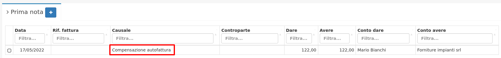 Si potrà vedere a questo punto un movimento in prima nota, creatosi per andare a compensare i conti dello stato patrimoniale.