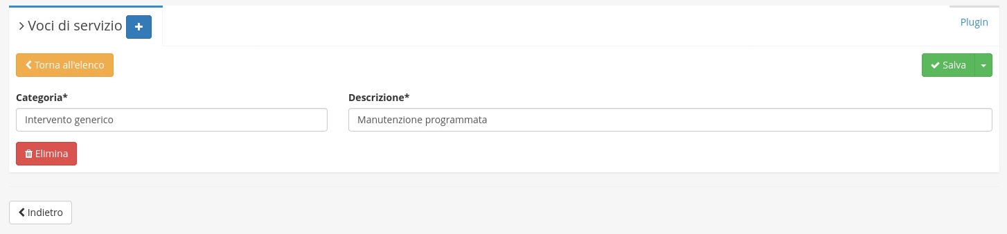 Per creare una nuova Voce di servizio si dovrà cliccare sul tasto (+).