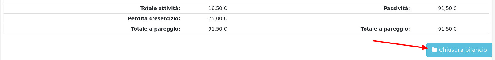 cliccare Chiusura bilancio